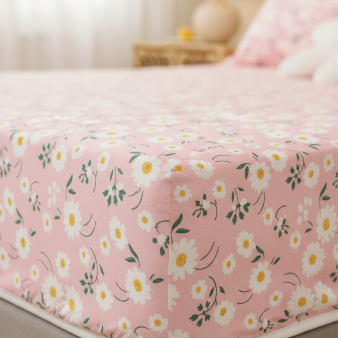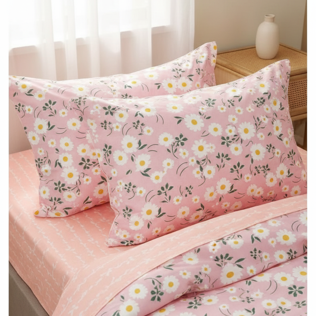 Searching for a way to add a cheerful, feminine touch to your bedroom? The Blossom Pink Daisy Bedsheet Set is engineered for those who love high-energy floral prints and premium fabric performance. Featuring a vibrant field of white and yellow daisies on a soft candy-pink base, this complete 120 GSM microfiber set addresses the need for bright, ultra-soft bedding that remains smooth and fade-resistant wash after wash.
