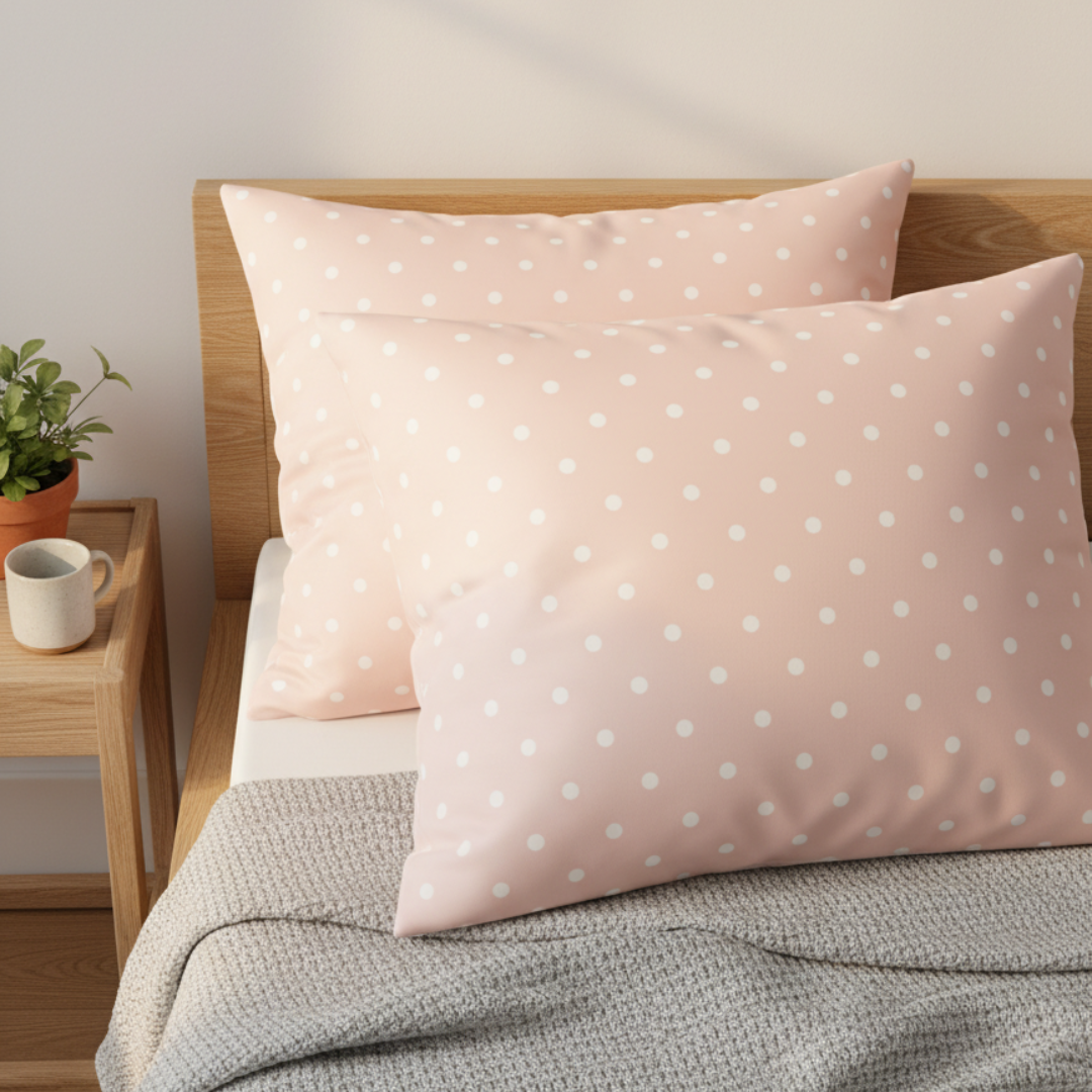 Looking to add a soft, classic, and charming touch to your bedroom? Our Pastel Pink Polka Dot Set is a perfect choice. It features a timeless pattern of clean white polka dots on a beautiful, soft pink background. Made from our premium 120 GSM microfiber, these sheets are exceptionally soft to the touch and designed to stay looking smooth and fresh with very little effort.