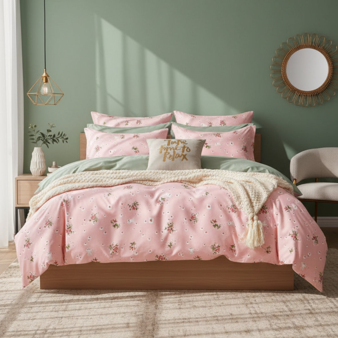 Looking to give your bedroom a soft and cozy feel? Our Sweet Pink Daisy Set is just what you need. It features a lovely soft pink color with tiny, delicate white and yellow daisies. Because it is made from our thick 120 GSM microfiber, it feels like a soft hug and stays looking smooth and fresh every single day.